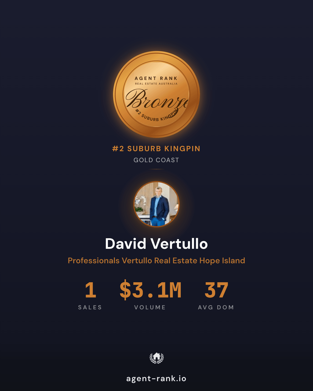 Professionals Vertullo Real Estate Hope Island| Metric | David | Runaway Bay Avg |